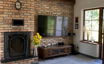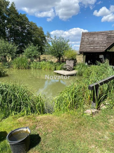 Nowy klimatyczny dom przy lesie z zagospodarowaną dzialka w sklad ktorej wchodzi; dom o powierzchni uzytkowej 155m 2 , zarybiony staw , oraz garaz na 3 samochody , kuznia i boksy dla koni .