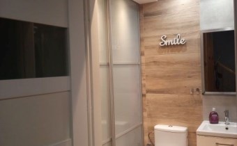 łazienka przeszła remont w 2018 roku, wymieniona armatura, płytki ścienne i podłogowe, oświetlenie, wydzielony został kącik gospodarczy mieszczący piec gazowy (wymieniony w 2022 roku), pralkę, wiadra, kosmetyki, detergenty itp.,