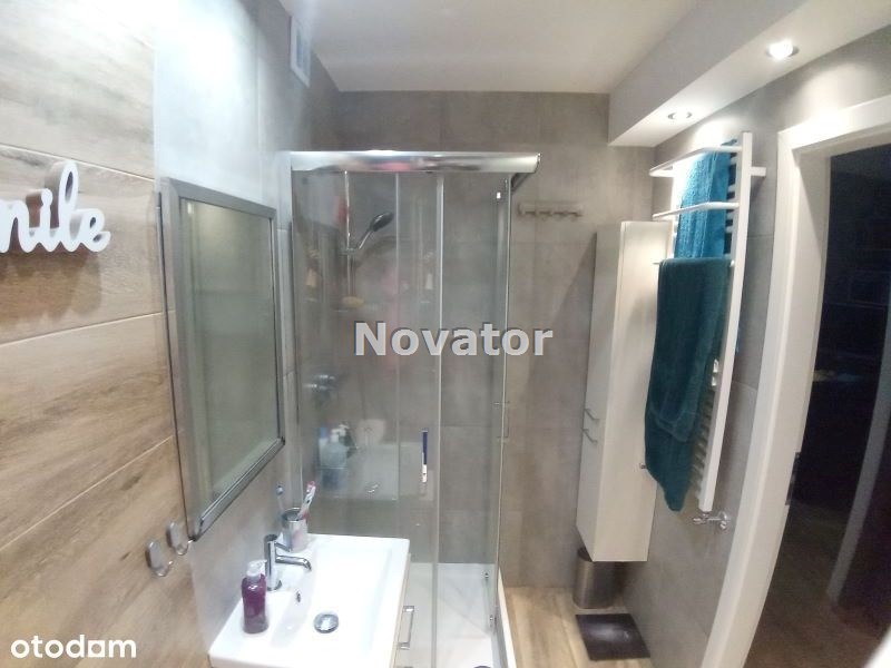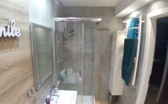 łazienka przeszła remont w 2018 roku, wymieniona armatura, płytki ścienne i podłogowe, oświetlenie, wydzielony został kącik gospodarczy mieszczący piec gazowy (wymieniony w 2022 roku), pralkę, wiadra, kosmetyki, detergenty itp.,
