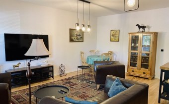 - przestronnego salonu z otwartą kuchnią i wyjściem na balkon (widok na park),