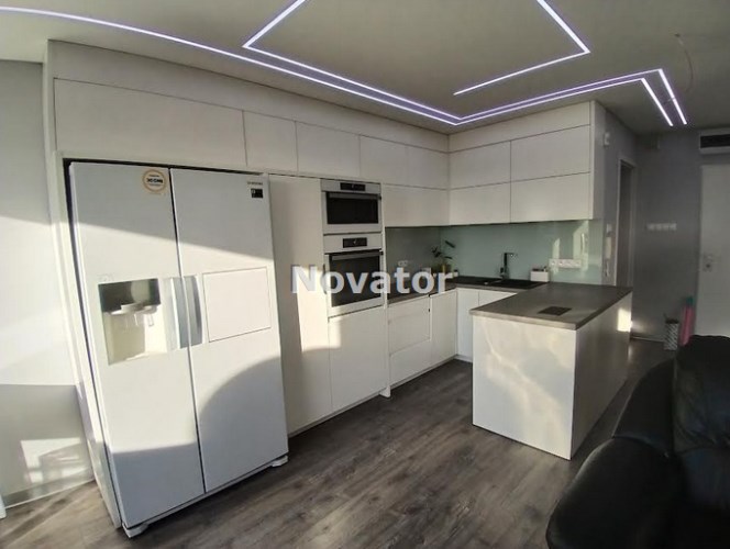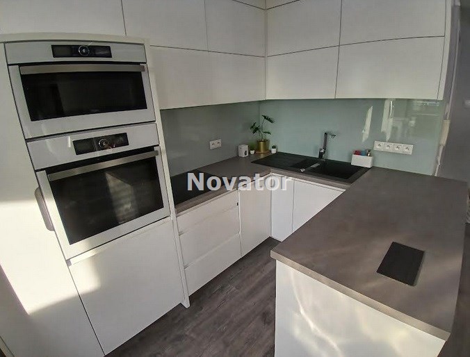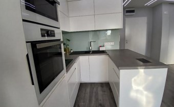 • w aneksie kuchennym zabudowa kuchenna oraz wysokiej jakości sprzęt AGD: piekarnik w zabudowie, kuchenka mikrofalowa w zabudowie, płyta elektryczna w zabudowie, wolnostojąca lodówko- zamrażarka Side by Side, zmywarka 45 cm,